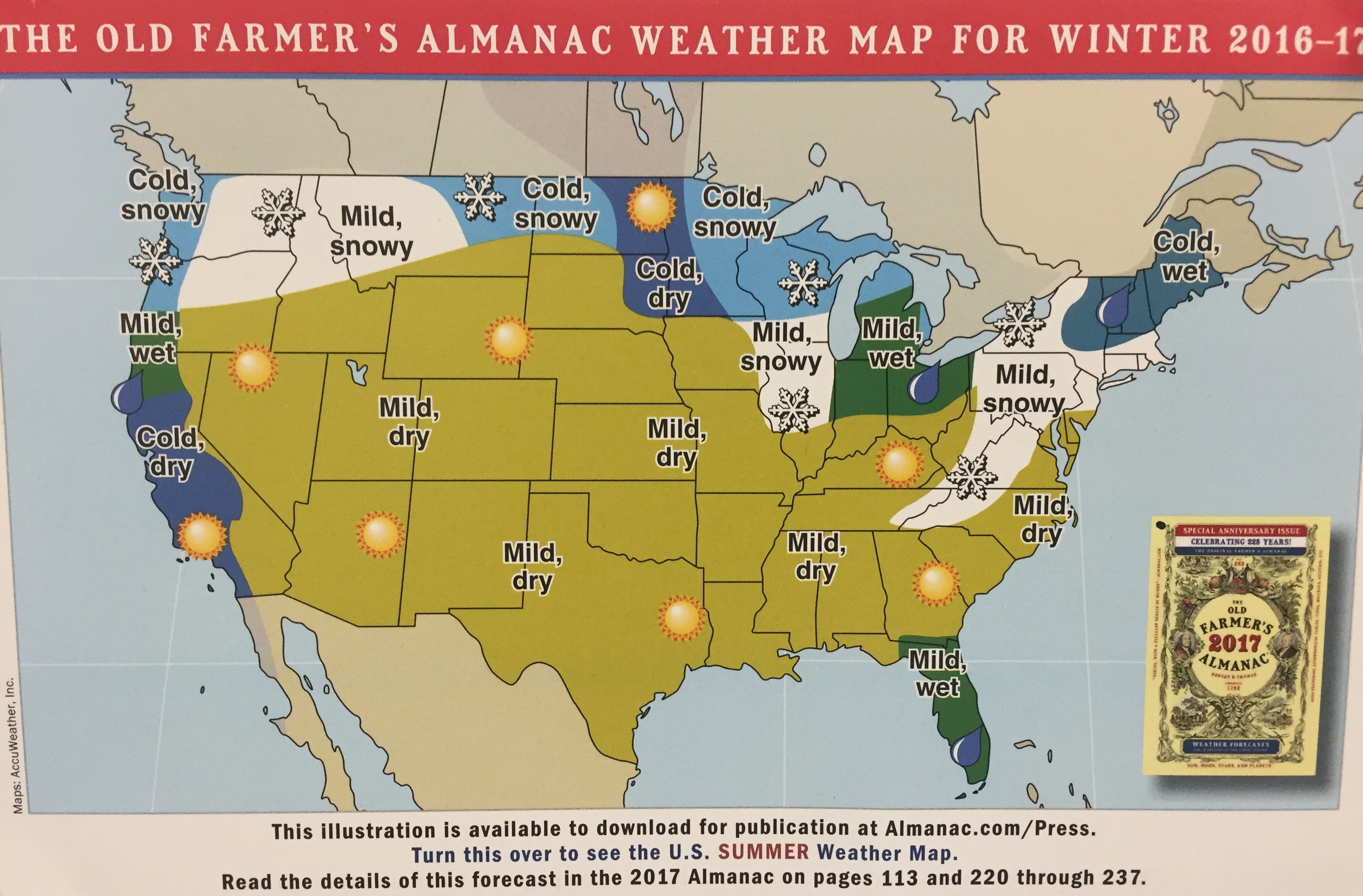 The 225th edition of the Old Farmer’s Almanac is on newsstands. It’s predicting a wet, mild winter for the lower Great Lakes in 2017. Click on the audio player to hear the conversation.