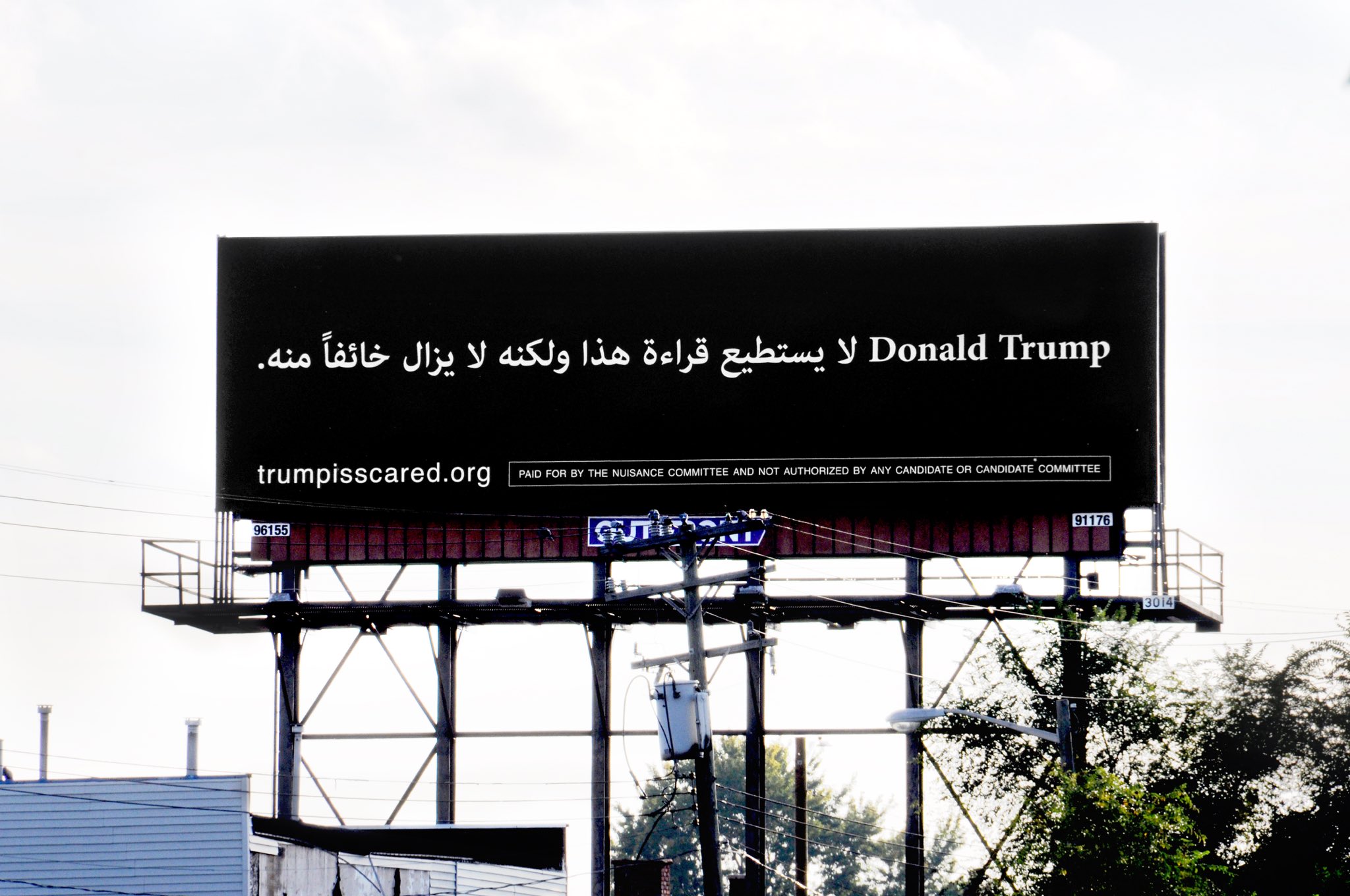 The billboard reads, “Donald Trump: He can’t read this, but he’s afraid of it.”