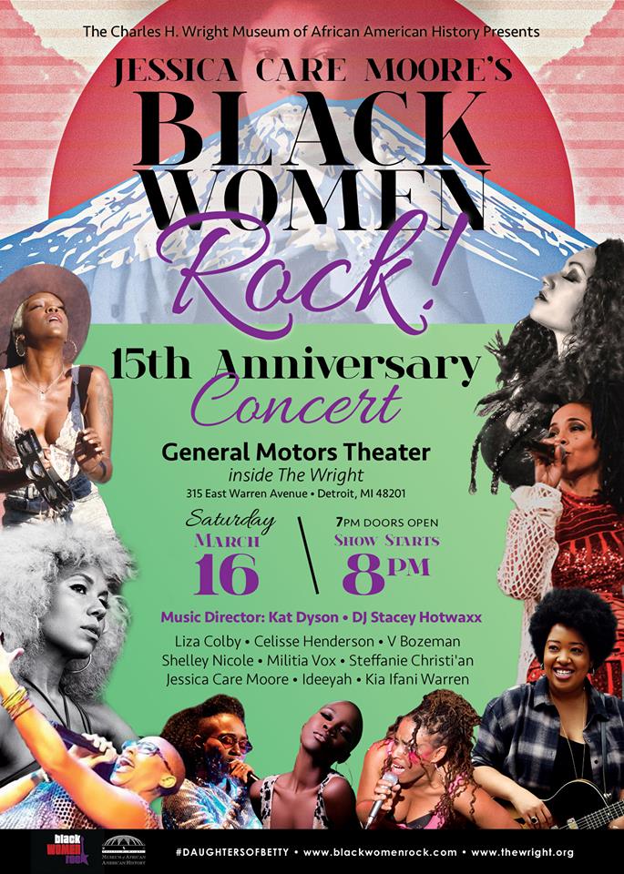 This edition of The Progressive Underground is a special TAKEOVER EDITION as internationally-renowned poet/author/artist/activist JESSICA CARE MOORE invades the WDET studios to talk about this year’s Black Women Rock show taking place at the Charles H. Wright Museum, Saturday, March 16 at 8:00 pm. Also joining Moore in the studio are: noted singer/songwriter IDEEYAH, the Godmother of House Music DJ Stacey “Hotwaxx” Hale and actress/tastemaker Tammy Sanders Dew.