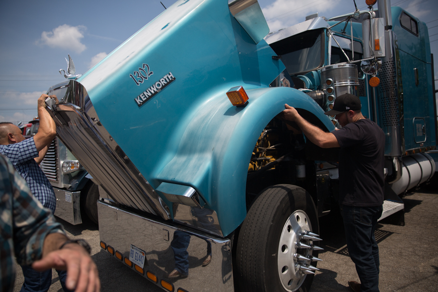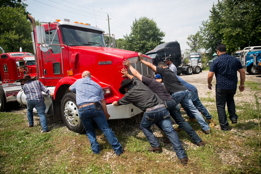 It’s a normal service. Families fill the wooden pews. There’s music, taking communion. But there’s one big difference between this service and a traditional one: Outside of the church 40 semi trucks line the parking lot.