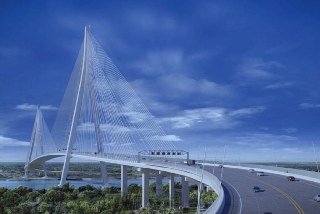A rendering of the Gordie Howe International Bridge, connecting Detroit and Canada over the Detroit River.