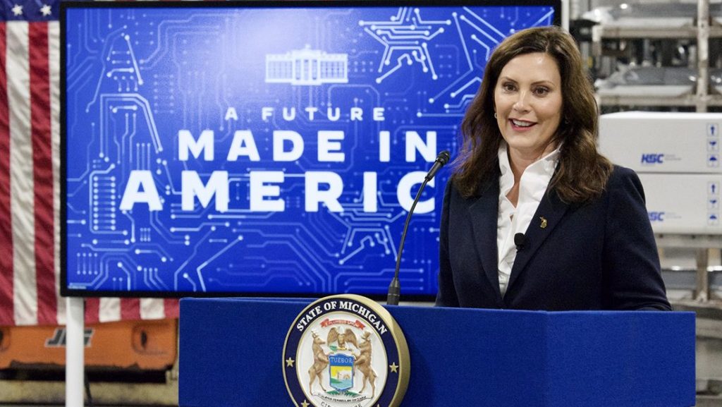 Gov. Gretchen Whitmer touts the passage of the CHIPS Act on Tuesday, Aug. 2, 2022 at Hemlock Semiconductor.