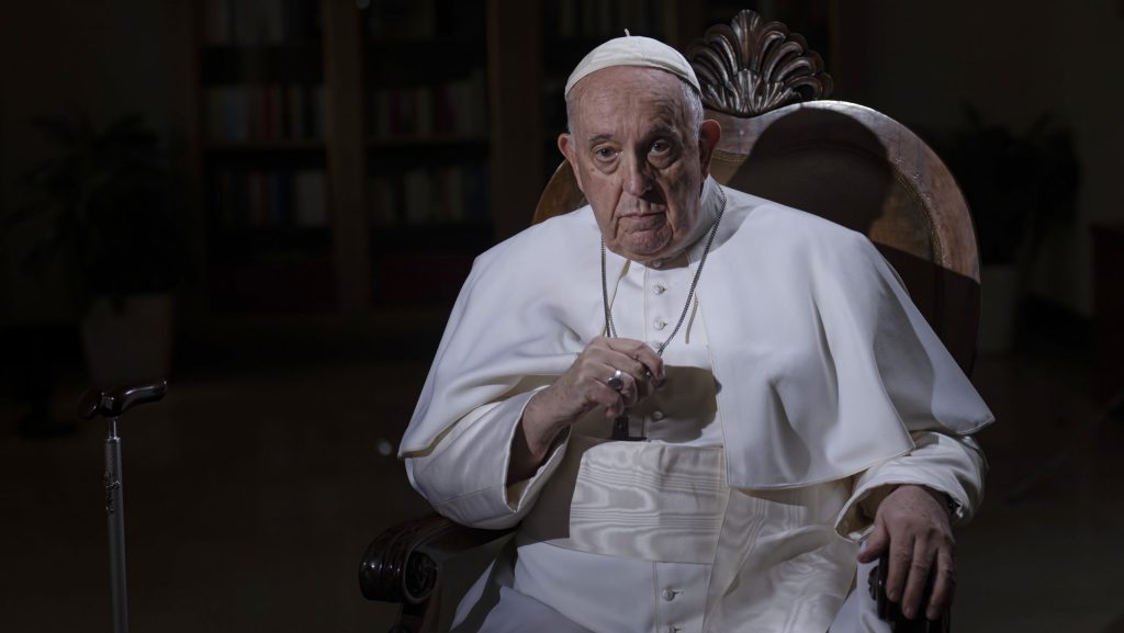 FILE - Pope Francis pauses during an interview with The Associated Press at The Vatican, Tuesday, Jan. 24, 2023.