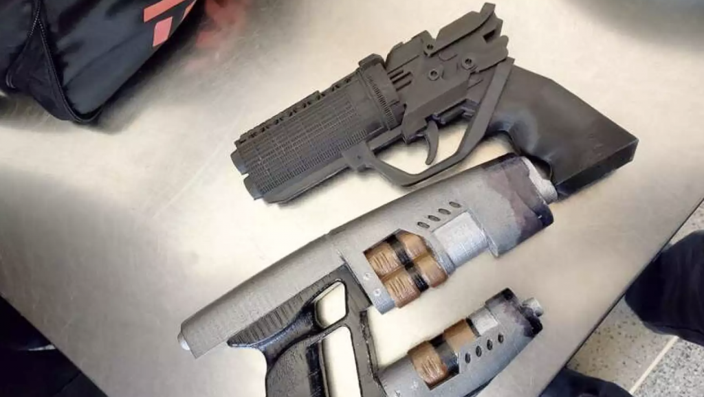 3D-printed replica firearms that were found by U.S. Transportation Security Administration officers in a carry-on bag at Raleigh-Durham International Airport on February 20, 2020.