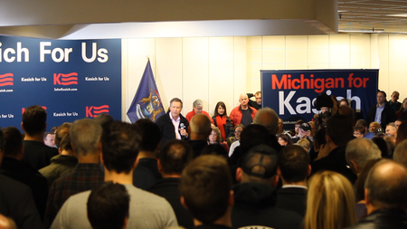 Following a strong finish in New Hampshire, Ohio Gov. John Kasich (R) is betting big on the Midwest to help him fulfill his presidential ambitions. Michigan is the first Midwestern primary state, so, it seemed worth it for Kasich to take a break from his official duties in Ohio and the critical South Carolina primary to make a swing through Michigan to stump for Republican votes and try to quell some Big 10 rivalries.