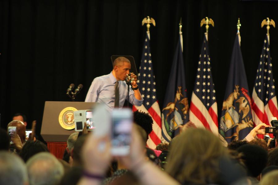 He gave a speech to a crowd at Flint’s Northwestern High School after visiting a food bank and listening to citizens share their concerns about the city’s water disaster.