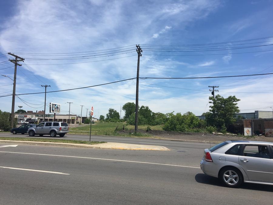 The point where the Inner Circle Greenway’s planned route turns west from Joseph Campau Street onto McNichols Road requires some imagination to see it as a cycling haven.