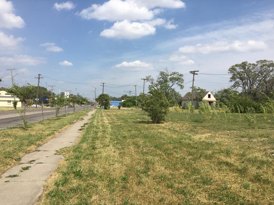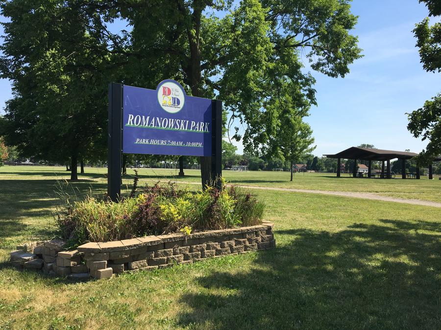 A possible plan would take the Inner Circle Greenway along Lonyo Avenue, which would meet Romanowski Park, a Detroit public space with paved walkways, grass, a shelter and basketball courts. It borders a school in a relatively dense neighborhood.