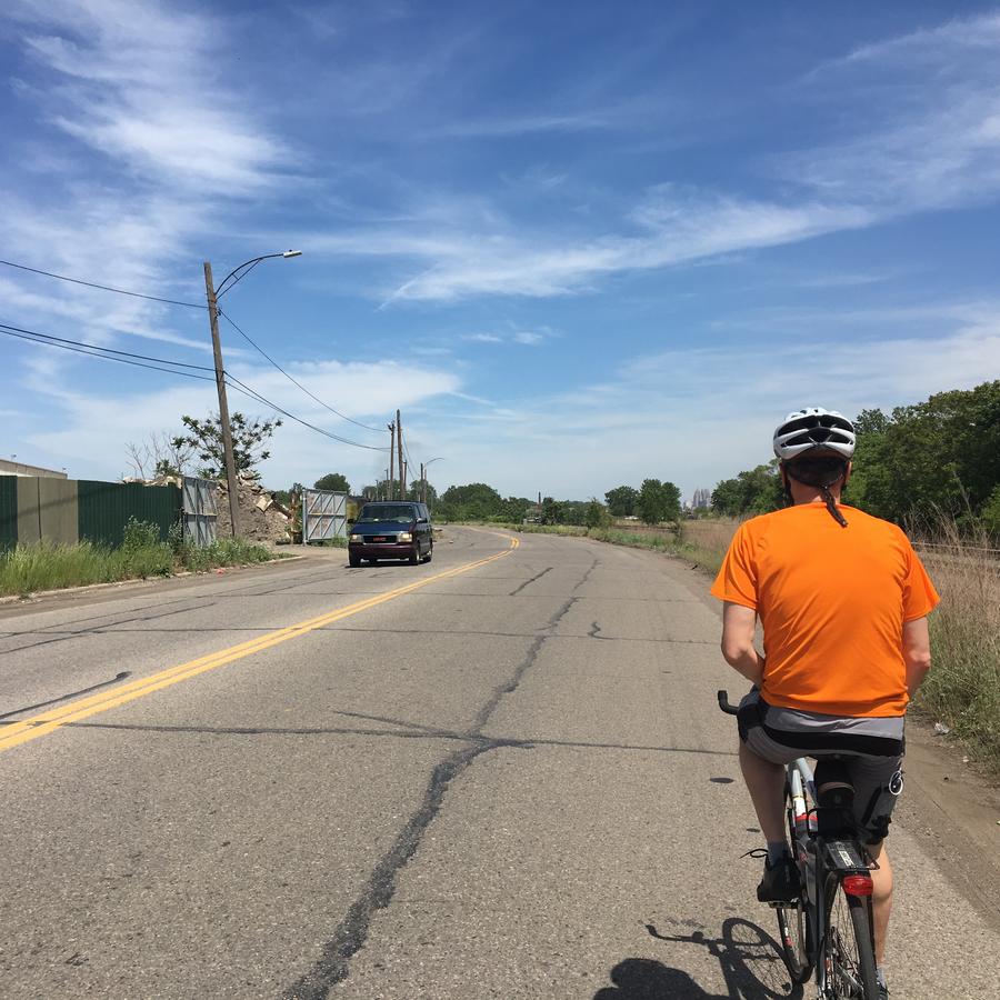 To get a street-level view of what’s currently in place for the route and what’s needed to make it a realistic route for commuting and recreational riding, I biked the route with Todd Scott, executive director of the Detroit Greenways Coalition.