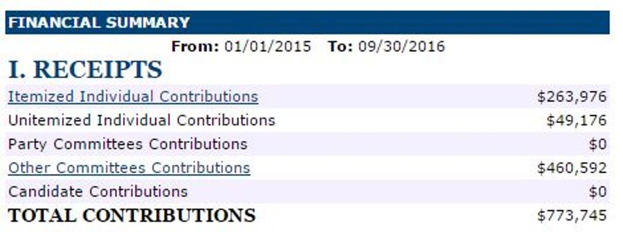 Toward that effort, she raised $773,745 from January 2015 through the end of September, according to the Federal Election Commission with the bulk of those funds coming from political action committees, many of them located out of state.