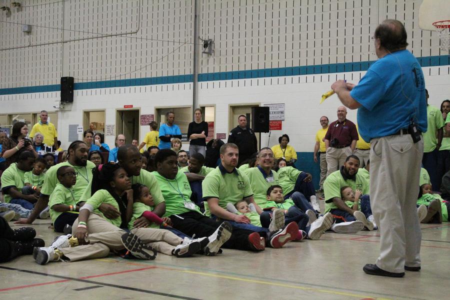 Each man is applauded as he walks into the gym. Though their children have not shown up, these men will be allowed to stick around for the festivities with the other families.