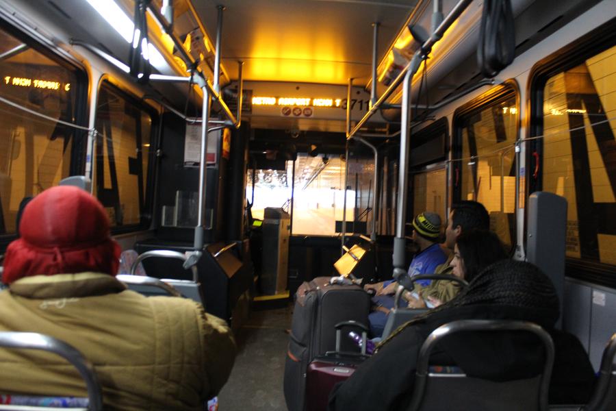 There is a clearly marked bus stop at the airport’s North Terminal. In the McNamara Terminal, SMART signs lead travelers to an indoor counter, but not to the actual bus stop. Curbside, there is a small, generic “municipal transportation” sign that could be easy to miss.