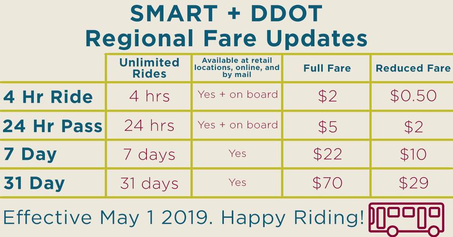 It’s called Dart (which appears to be a portmanteau of DDOT and SMART) and it will offer additional ways to pay for transit. Starting today, 4 Hour, 24 Hour, 7 Day and 31 Day Dart passes are available at regular and reduced fares. Dart passes were created with the intent of streamlining travel, especially for riders who use both systems.
