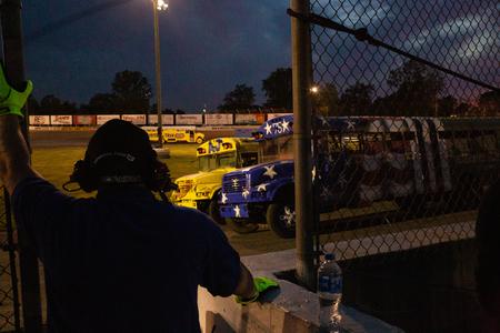 Chants fill the night air and the crowd is energized as they await Flat Rock Speedway’s Night of Destruction, where school buses take a whip around the race track.