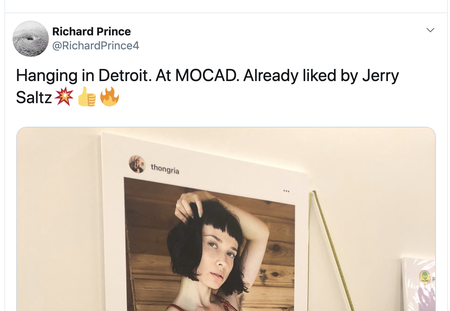Last month, she discovered that same photo tweeted out by  controversial artist Richard Prince, referencing his latest show, “New Portraits” currently on display at the Museum of Contemporary Art Detroit (MOCAD).
