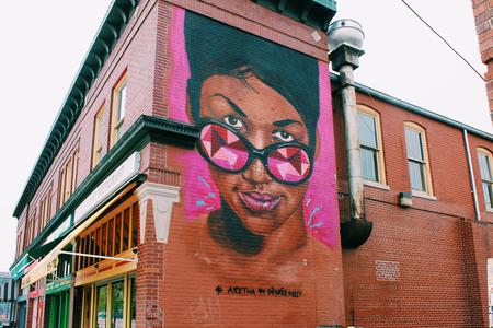 That personality-exuding mural of Aretha Franklin peering over her dark-framed shades with a slight smirk spotted when strolling through the Eastern Market, that’s the work of Detroit visual artist Désirée Kelly.