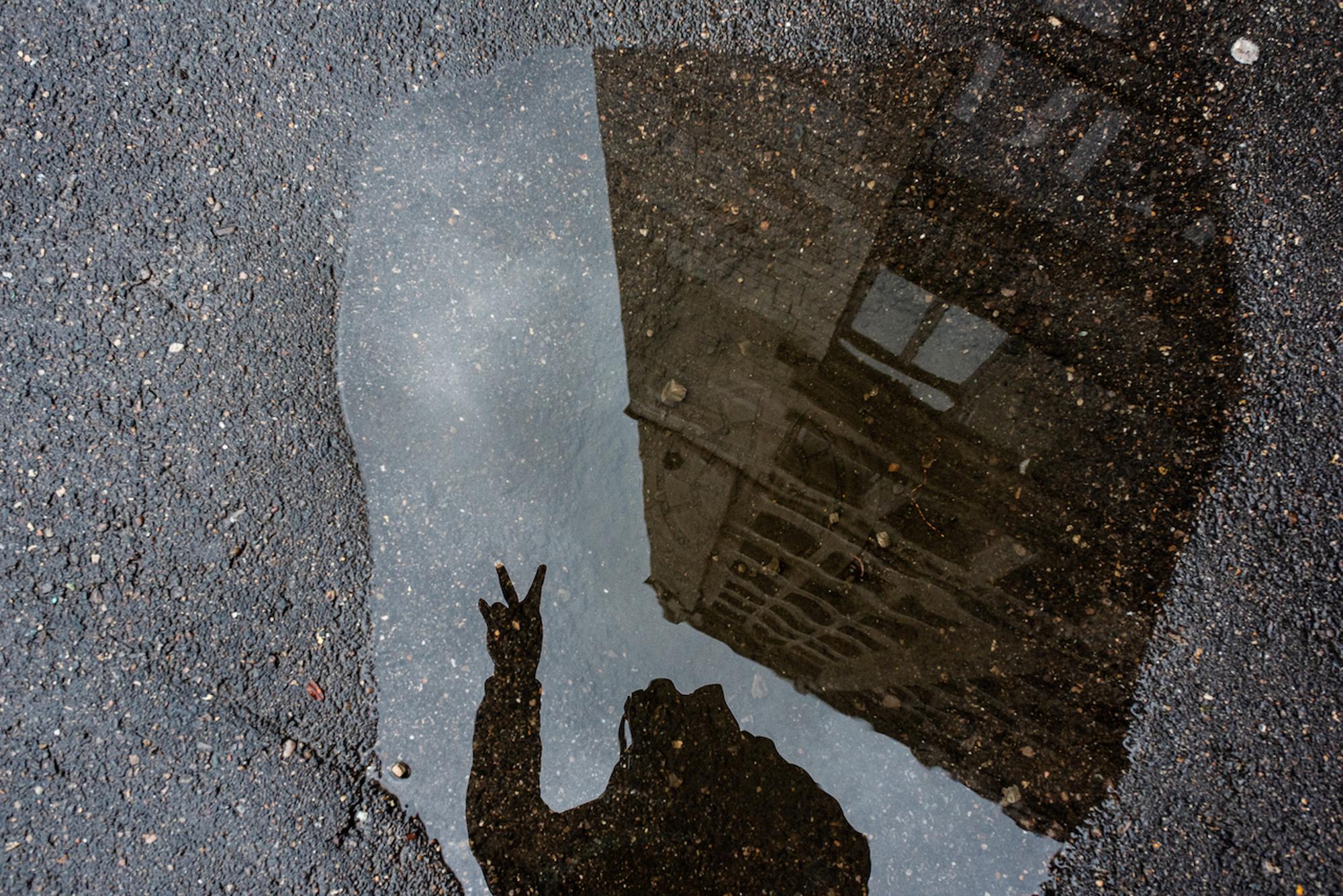 So recently just being able to walk downtown has been a huge comfort for me. Looking at the buildings, looking at the things that I’ve forgotten, missed the details. It’s rained a lot so I was really looking at puddles and the reflections in water, and remembering a lot of photographs that I’d seen in photo books and wondering how that moment happened before them.