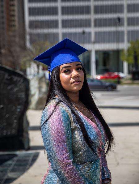 When I was downtown, I took a photo of a woman that was in a graduation cap.