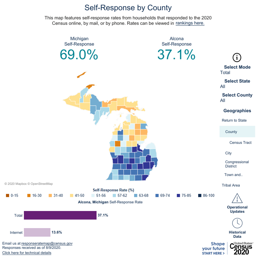 So far, almost 70% of all households in Michigan have responded online, by mail, or by phone, surpassing 2010’s final self-response rate.