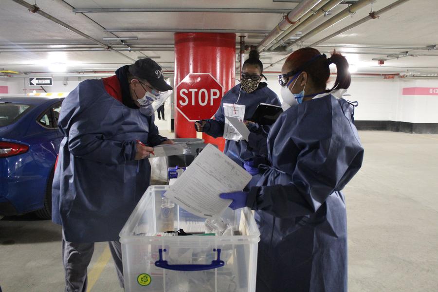 The City of Detroit began COVID-19 vaccinations on Wednesday at TCF Center downtown. Residents are receiving their shots while sitting in their cars in a heated parking structure.
